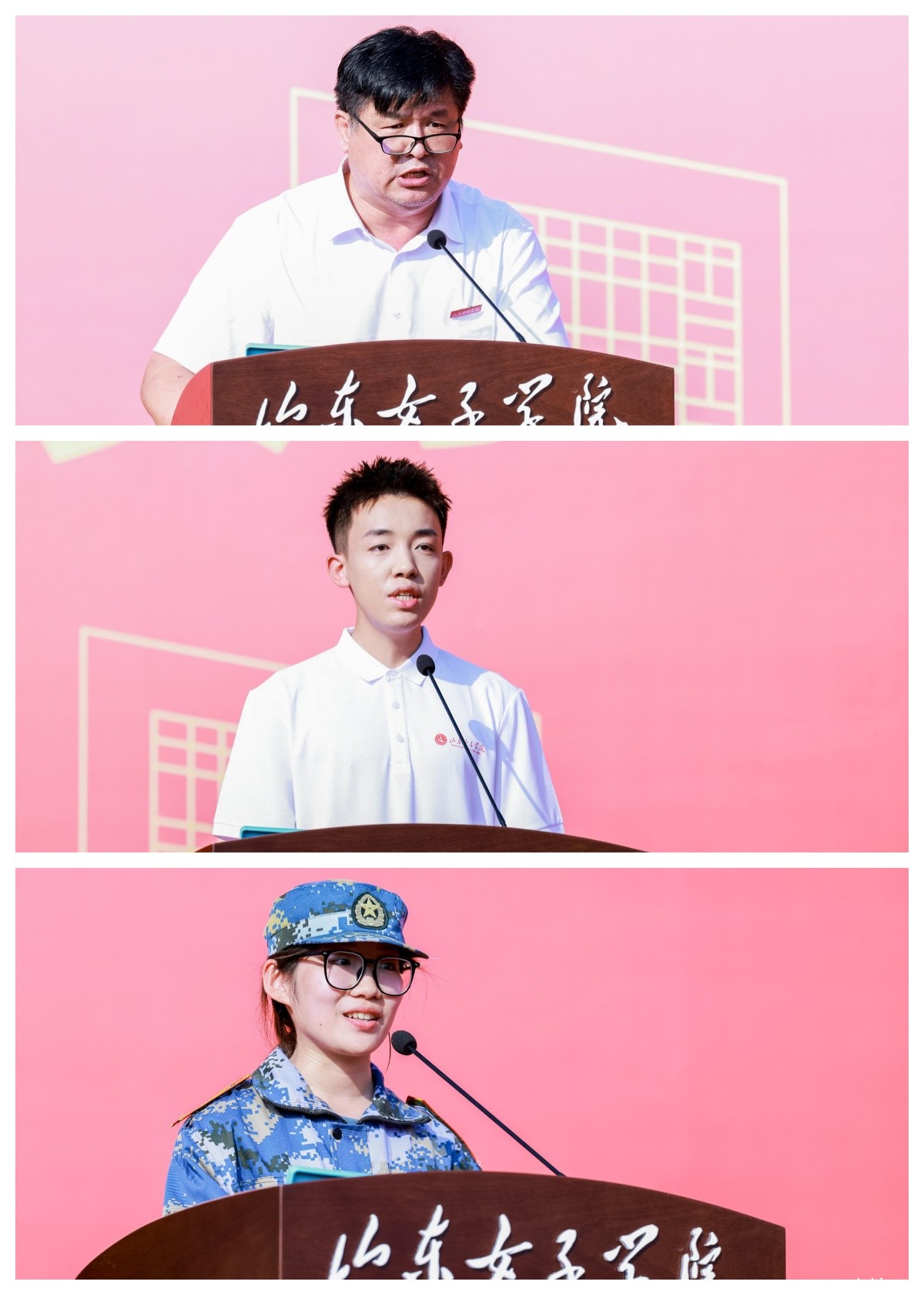 教师代表、工商管理学院院长张可成教授,在校生代表、艺术设计学院学生孙文龙、新生代表经济学院学生马瑜遥分别发言。