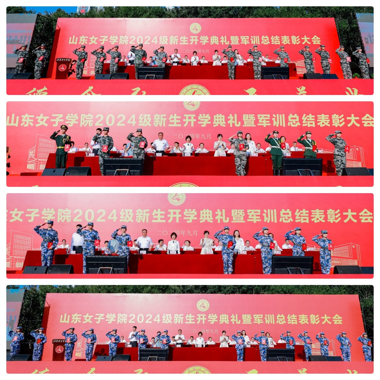 全体2024级新生唱响校歌,共擎校旗,并面向校旗庄严宣誓。