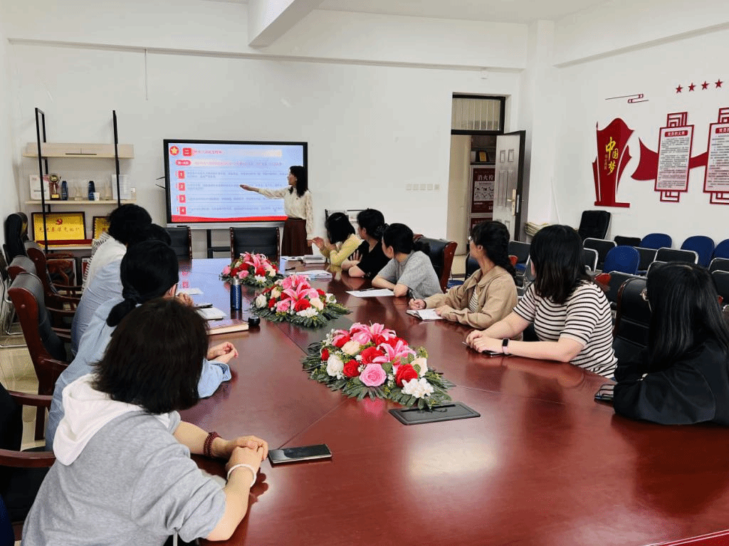 深耕文化传承,筑牢精神根基。党委委员、副院长赵月以“非遗里的中国精神:从文化传承看党员使命”为题,从非遗中的家国情怀、工匠精神、民族智慧切入,系统阐释文化传承的党员责任。她强调,党员需在非遗保护宣传、传承创新及实践活动中发挥先锋作用,并结合省文化创新奖申报工作,部署成果梳理与目标规划,推动非遗文化与艺术设计专业深度融合。