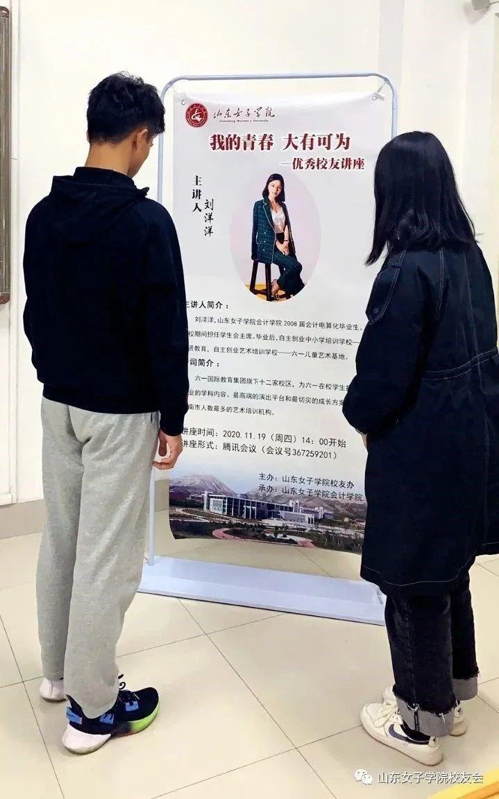 会计学院为更好帮助女院学子追逐青春梦想,实现自我价值,树立正确的人生观、价值观、就业观,特于2020年11月19日,诚邀2008届会计电算化优秀校友刘洋洋,以“我的青春、大有可为”为主题,为会计学院的学弟学妹展开了一堂生动的“云”讲座。