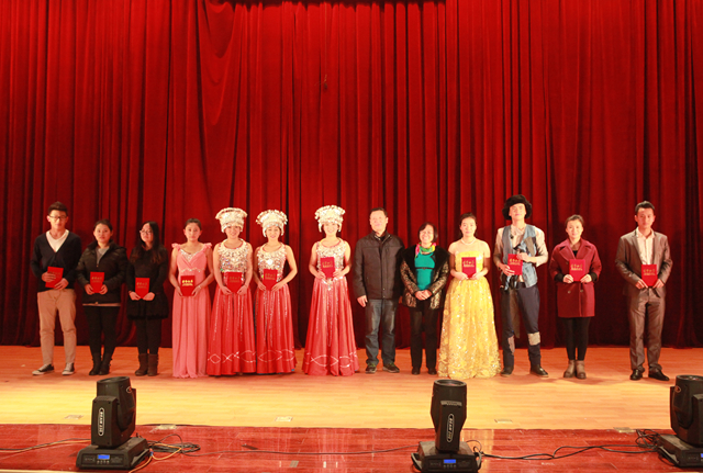 汇报演出在青春激昂的新打击乐《校园节拍》中拉开帷幕,众多优秀选手联手为观众献上一场高品味、高质量、充满冲击力的视听盛宴,带领在场的观众进入艺术殿堂。与会相关领导及嘉宾分别为在本次大赛中的获奖选手颁奖,恭贺佳绩。汇报演出在音乐学专业获奖选手演唱的《苗岭连北京》中落下帷幕。